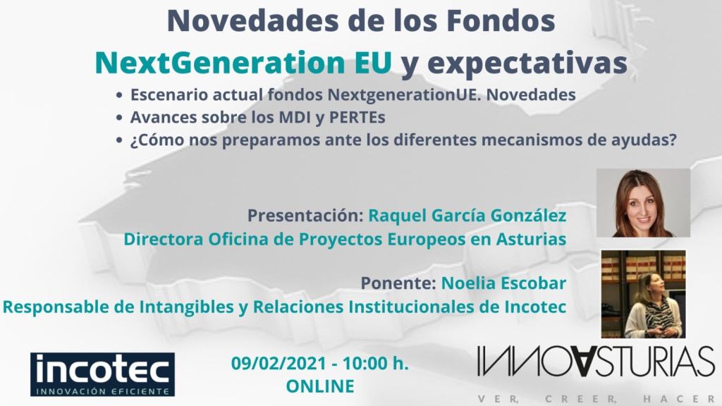 El martes 9 de febrero escuchamos con mucha atención la charla «NOVEDADES DE LOS FONDOS NEXTGENERATION EU Y EXPECTATIVAS» que impartió Noelia Escobar (INCOTEC)