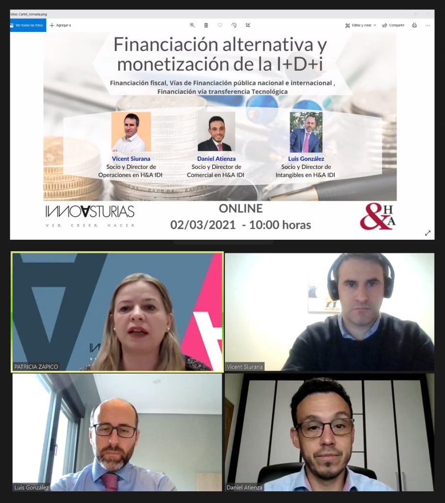 El martes 2 de marzo organizamos y participamos en la jornada online «FINANCIACIÓN ALTERNATIVA Y MONETIZACIÓN DE LA I+D+I • Financiación fiscal, financiación pública nacional e internacional y financiación vía transferencia tecnológica», con Vicent Siurana, Daniel Atienza y Luis González (H&A IDI – Herrero & Asociados)