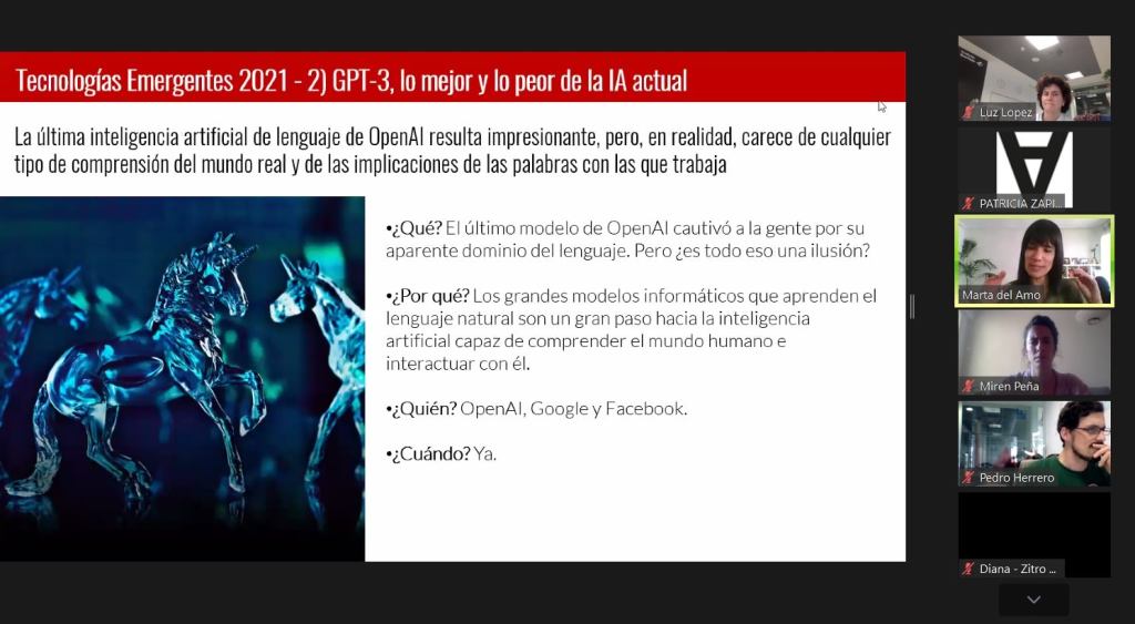 El mismo jueves 4 participamos también en el interesante webinar «TECNOLOGÍAS EMERGENTES 2021», según el medio TECHNOLOGY REVIEW EN ESPAÑOL del MIT (Massachusetts Technology Institute).