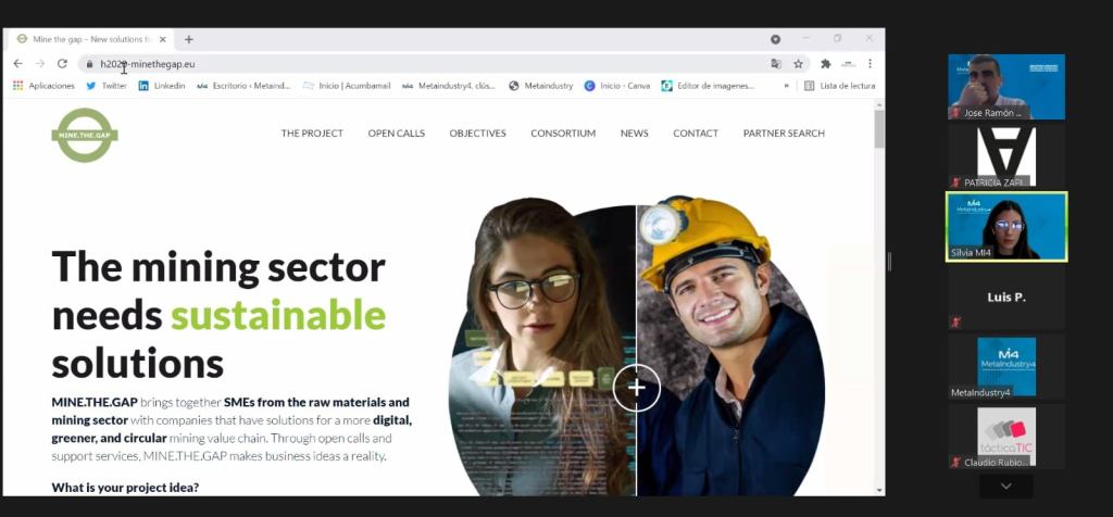 El martes 13 de abril participamos en la jornada informativa online sobre «MINE THE GAP» y la financiación europea para proyectos de minería e industrias extractivas y materias primas, en el que participa Metaindustry4 junto a un consorcio internacional de 11 organizaciones de 9 países europeos y que tiene como objetivo impulsar a las pequeñas y medianas empresas mineras y de materias primas en su proceso de transformación sostenible y digital.