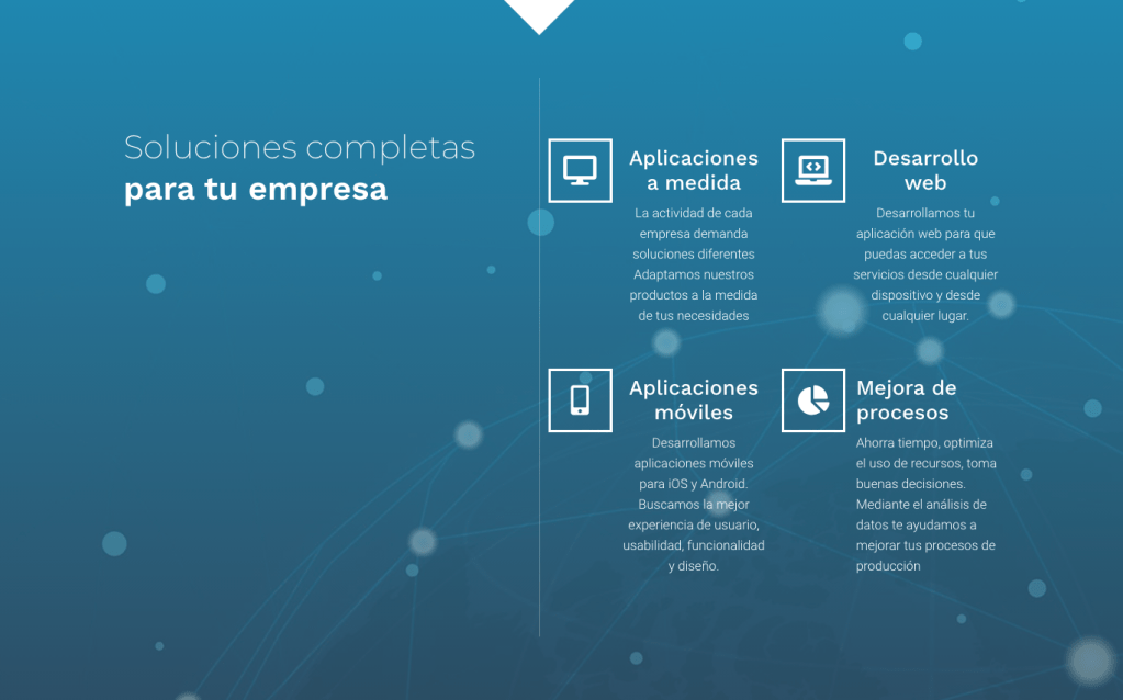 El objetivo de nuestro trabajo es ayudar a nuestros clientes a transformar su negocio aplicando las nuevas tecnologías en la mejora de sus procesos de producción y la obtención y el tratamiento de información que les permita tomar mejores decisiones, tanto en su día a día como desde el punto de vista estratégico.