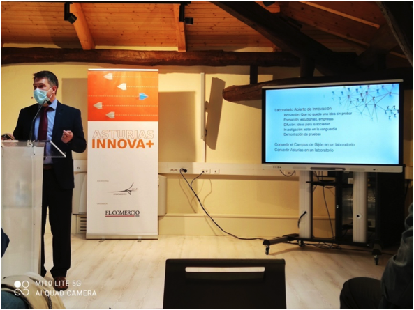 El mismo martes 22 asistimos a la primera sesión de la jornada «La innovación escribe el futuro», organizada por Asturias Innova+, donde se habló del 5G, el futuro de las antiguas baterías de cok de Avilés y de Avilés, ciudad innovadora.