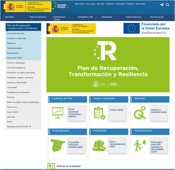 El Ministerio para la Transición Ecológica y el Reto Demográfico (MITECO) lanza un nuevo apartado en su página web con toda la información relacionada con la transición ecológica en el marco del Plan de Recuperación, Transformación y Resiliencia (PRTR).