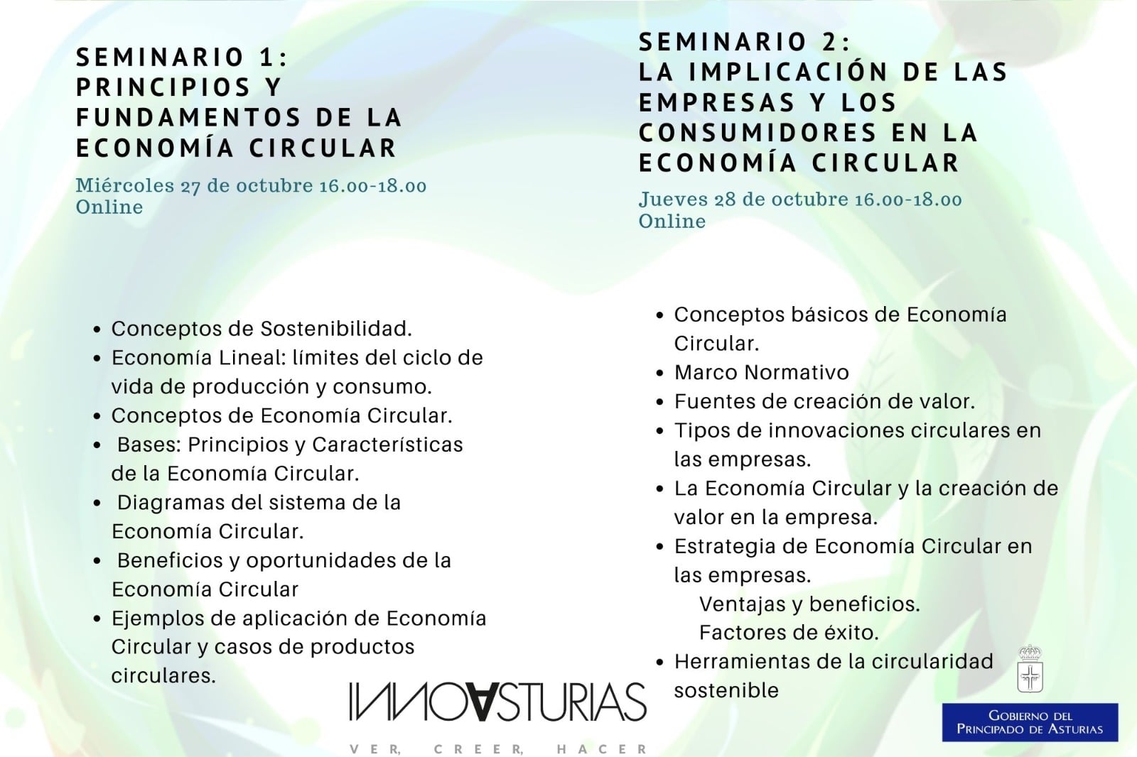 El primero de estos dos seminarios impartidos por Magaly González lleva por título «PRINCIPIOS Y FUNDAMENTOS DE LA ECONOMÍA CIRCULAR» y tratará, entre otros, los siguientes asuntos:
