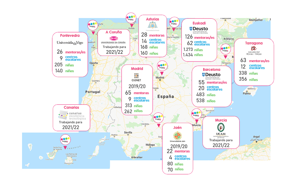 Inspira STEAM es un proyecto pionero para el fomento de la vocación científico-tecnológica entre las niñas y los niños, basado en acciones de sensibilización y orientación, que imparten mujeres profesionales del mundo de la investigación, la ciencia y la tecnología.