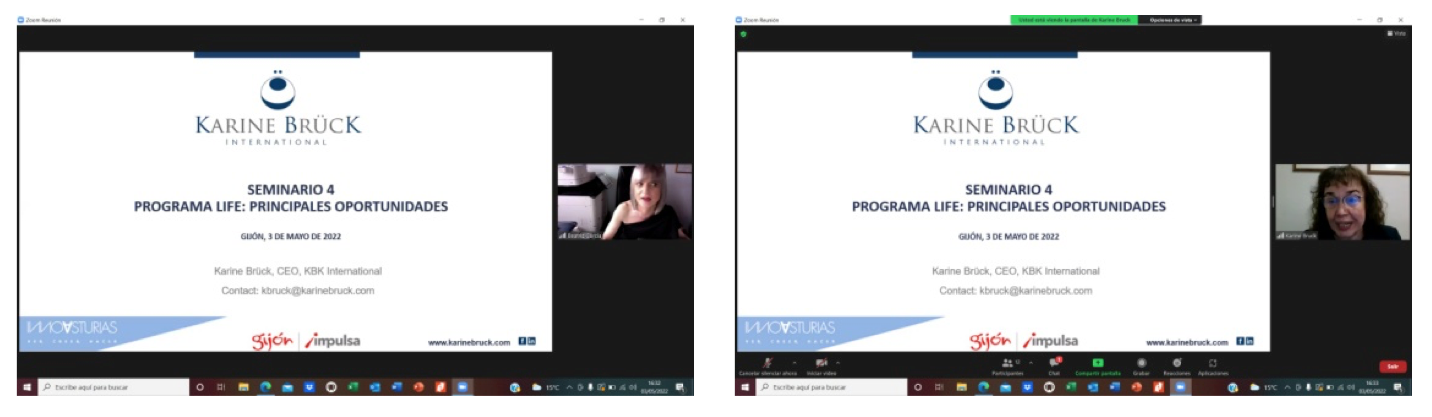 Dentro del programa general de Seminarios sobre Innovación para este curso 2022 (celebrados, todos ellos, en formato online) y, más concretamente, del ciclo «EL NUEVO PERIODO DE PROGRAMACIÓN EUROPEA Y NEXT GENERATION», el pasado martes 3 de mayo se desarrolló el seminario número 4: «PROGRAMA LIFE: PRINCIPALES OPORTUNIDADES», dirigido por Melchor Reyes Callejas y Karine Brück (Karine Brück International).