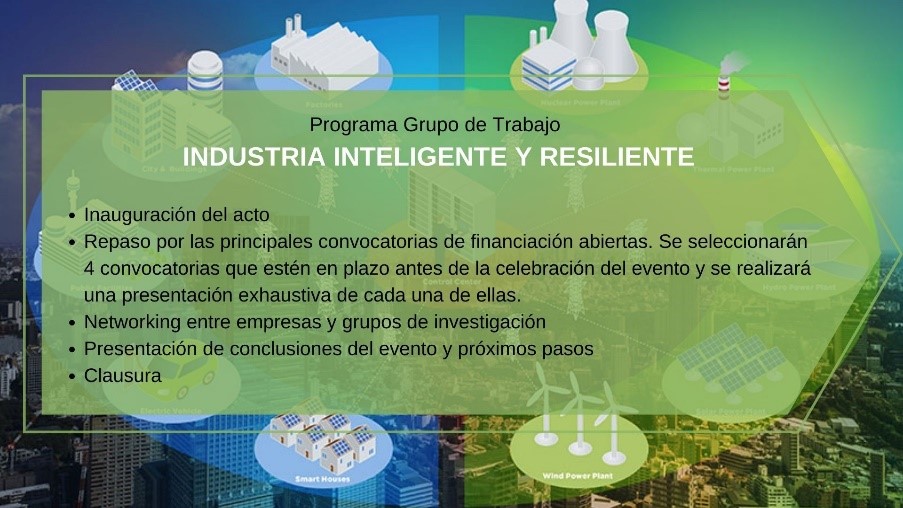 El 8 de noviembre tendrá lugar una Reunión del Grupo de Trabajo INDUSTRIA INTELIGENTE Y RESILIENTE.