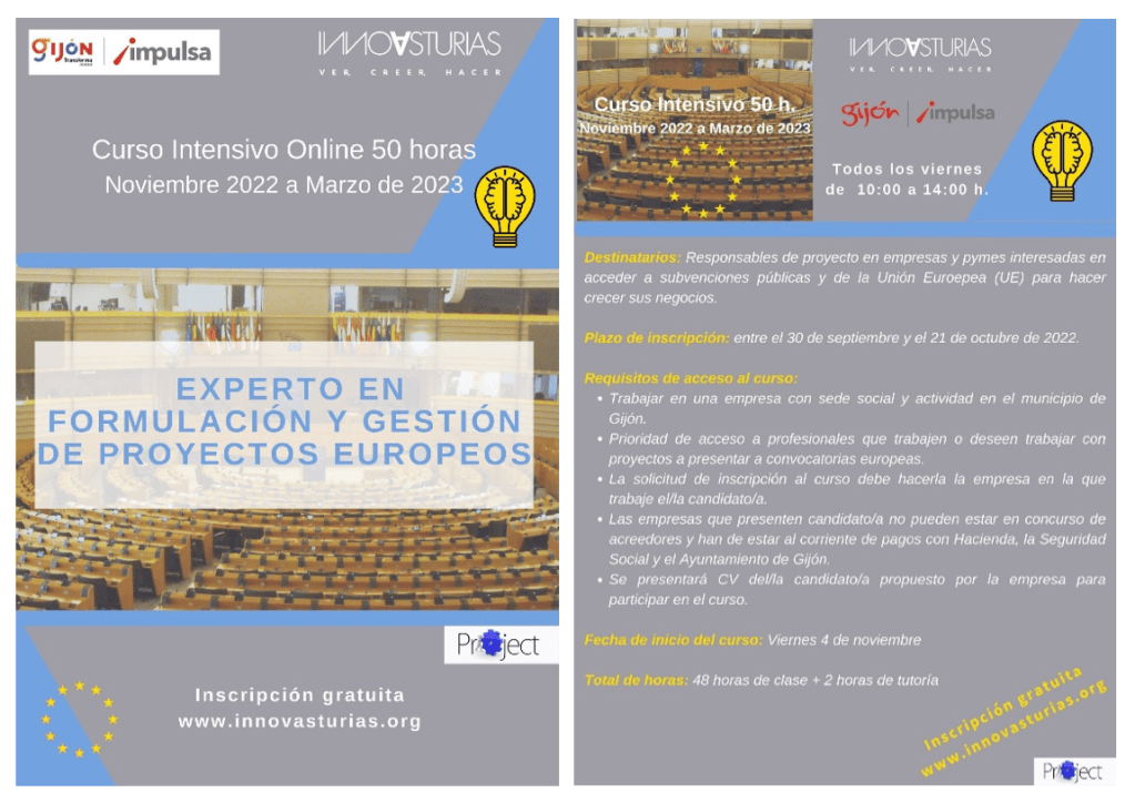 CURSO «EXPERTO EN FORMULACIÓN Y GESTIÓN DE PROYECTOS EUROPEOS 2023» EN AVILÉS