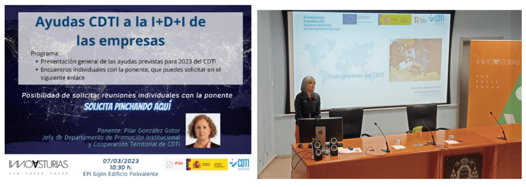 El pasado martes, 7 de marzo, Innovasturias, en colaboración con el CDTI (Centro para el Desarrollo Tecnológico Industrial), organizó la Jornada “AYUDAS CDTI A LA I+D+i DE LAS EMPRESAS”, en el Salón de Actos de la Escuela Politécnica de Ingeniería de Gijón (Universidad de Oviedo) y con Pilar González Gotor (Jefa del Departamento de Promoción Institucional y Cooperación Territorial del CDTI) como ponente.