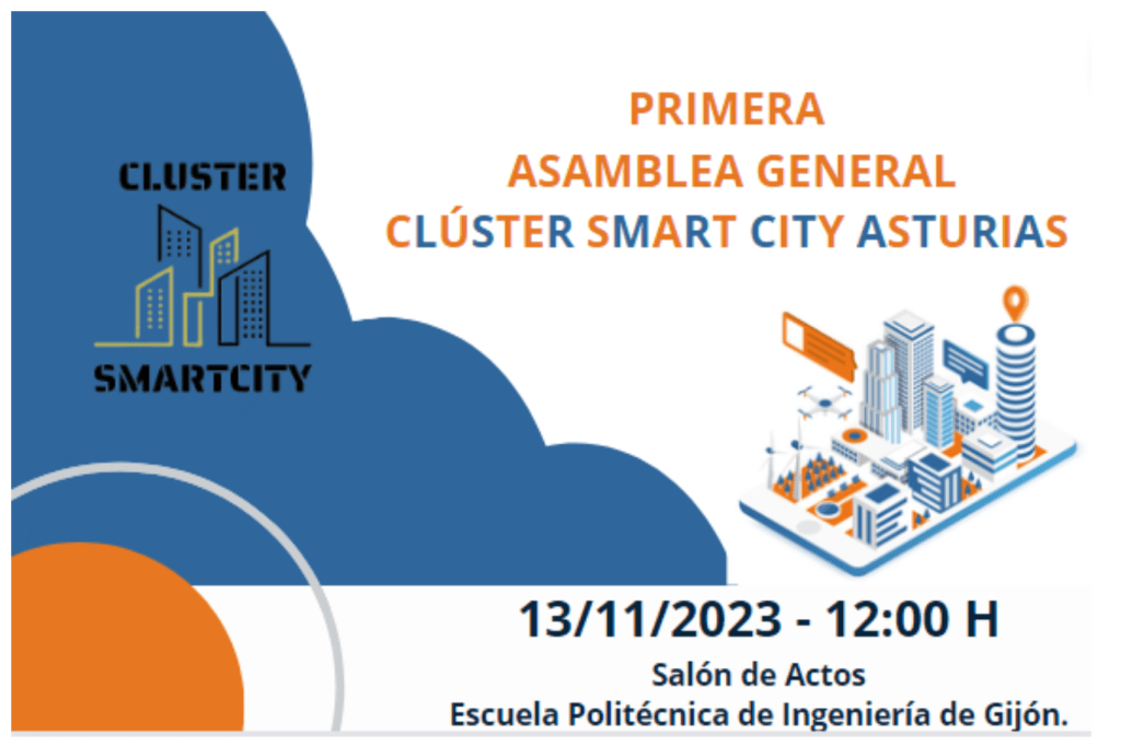El Clúster «Smart City» Asturias organiza para el próximo 13 de noviembre su primera Asamblea General para socios del Clúster, en el Salón de Actos de la Escuela Politécnica de Ingeniería (EPI) de Gijón, a las 12:00 horas.