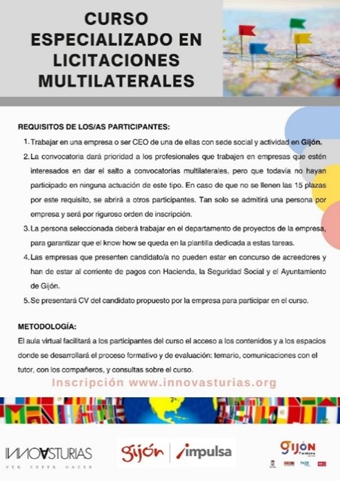 Esta semana finaliza el curso de ESPECIALIZACIÓN EN LICITACIONES MULTILATERALES financiado por Gijón Impulsa, en la convocatoria de Incentivos 2023 para empresas de Gijón.