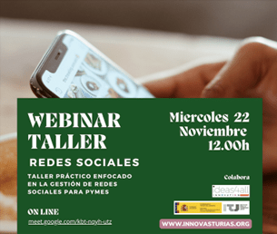El 22 de noviembre Innovasturias celebrará de forma online el Webinar TALLER REDES SOCIALES las 12:00 horas.