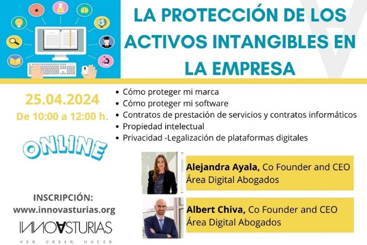 Con la colaboración del Área Digital Abogados, ayer jueves 25 de abril impartimos de forma online la Jornada LA PROTECCIÓN DE LOS ACTIVOS INTANGIBLES EN LA EMPRESA.