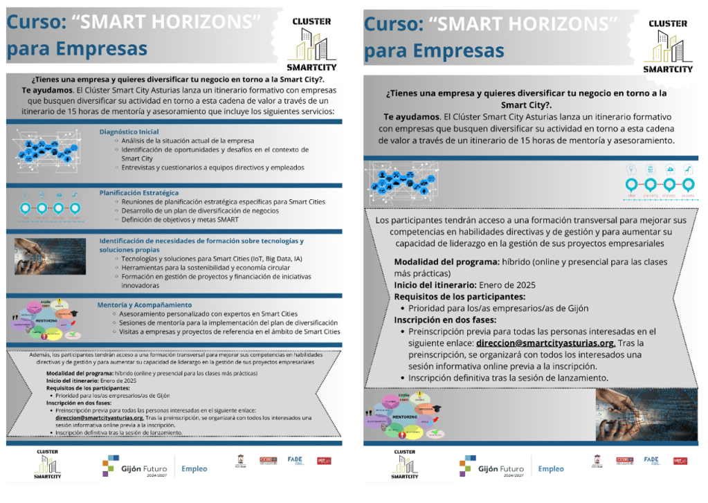 El clúster Smart City Asturias pone en marcha el Curso «SMART HORIZONS», en dos versiones: para DESEMPLEADOS y para EMPRESAS.